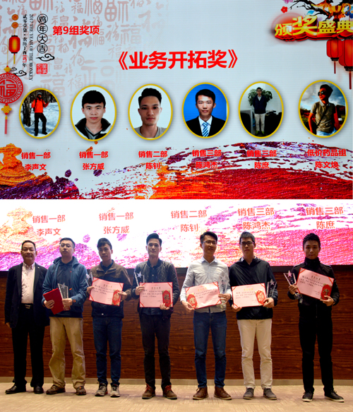 依次頒發返利補差項目的準確完成獎、杰出團隊獎、總經理特別獎
