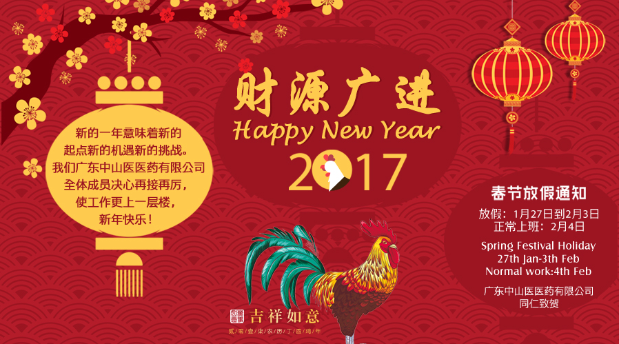 廣東中山醫(yī)醫(yī)藥有限公司全體同仁恭祝各位新春快樂、財源廣進!