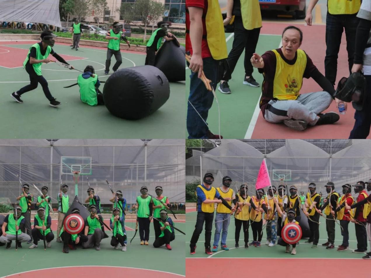 接下來到了團隊比試環節,游戲分為三輪進行,學員們帶上弓和箭,齊心協力“打仗啦”。